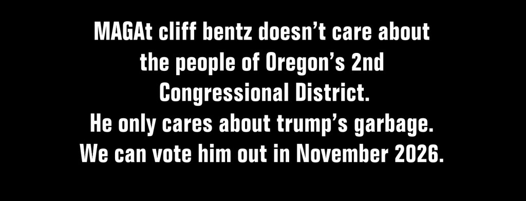 Because of MAGA garbage like Oregon 2nd Congressional Representative cliff bentz this is America’s future. The goal of trump & his MAGAts is to destroy Social Security, Medicare & Medicaid. Plus cutting the VA medical system. The video is from Progress Action Fund.Umatilla County Democrats Book Club meeting for April is coming up. The book is ‘The Fifth Risk’ by Michael Lewis. Meeting is Tuesday April 1st 7PM at Brett’s Books in Pendleton.Democrats are Stronger Together against the Republican extremism of Donald Trump, Elon Musk, Cliff Bentz & all the MAGAts.This has been bouncing around social media the last couple days. It is true because Volodymyr Zelensky has faced bullying dictators before.Oregon Representative cliff bentz is a complete trump MAGAt. bentz wants tax cuts for billionaires plus ending Social Security, Medicare & Medicaid. bentz will destroy education, VA, NOAA, FDIC, NHTSA, EPA, Postal Service, Head Start, unions, Civil Rights, Women’s Rights & more.